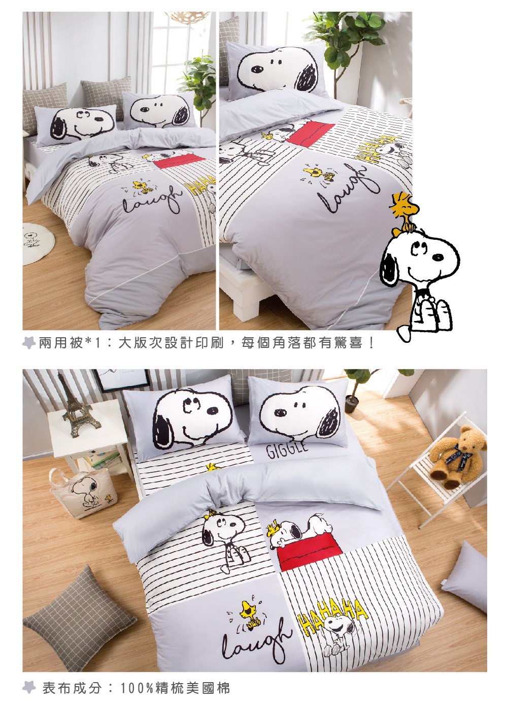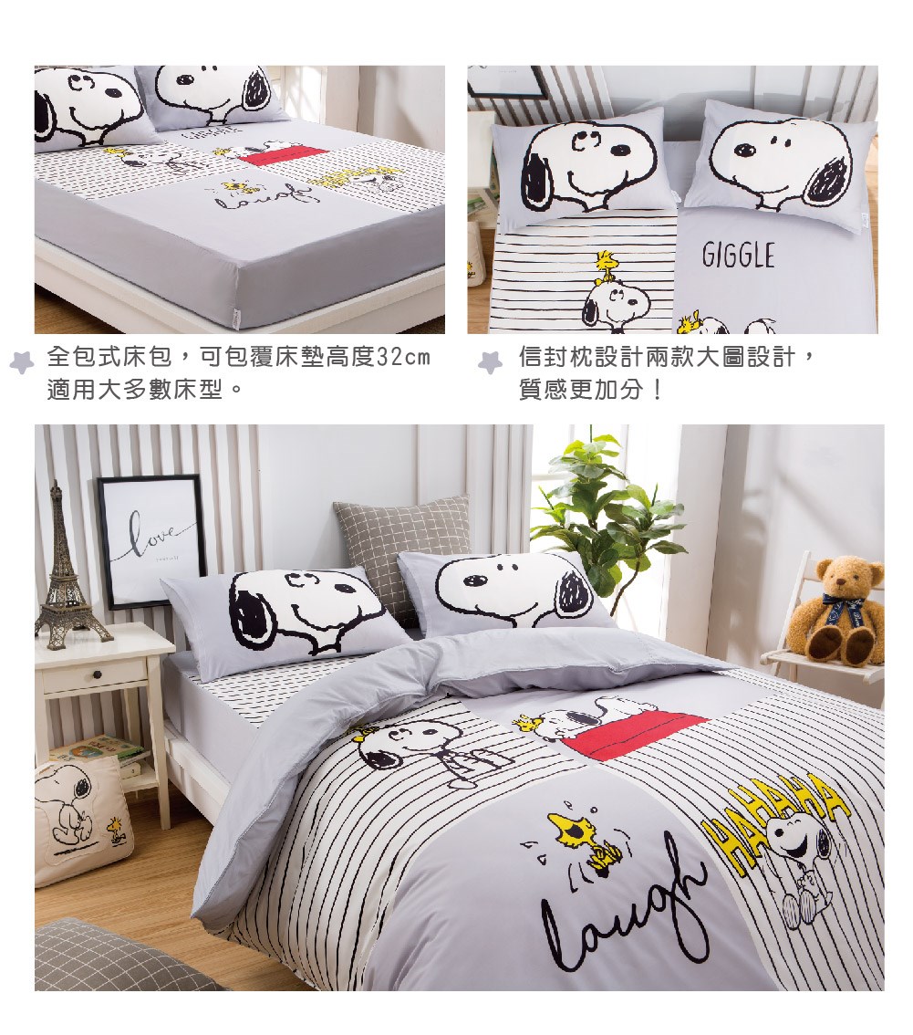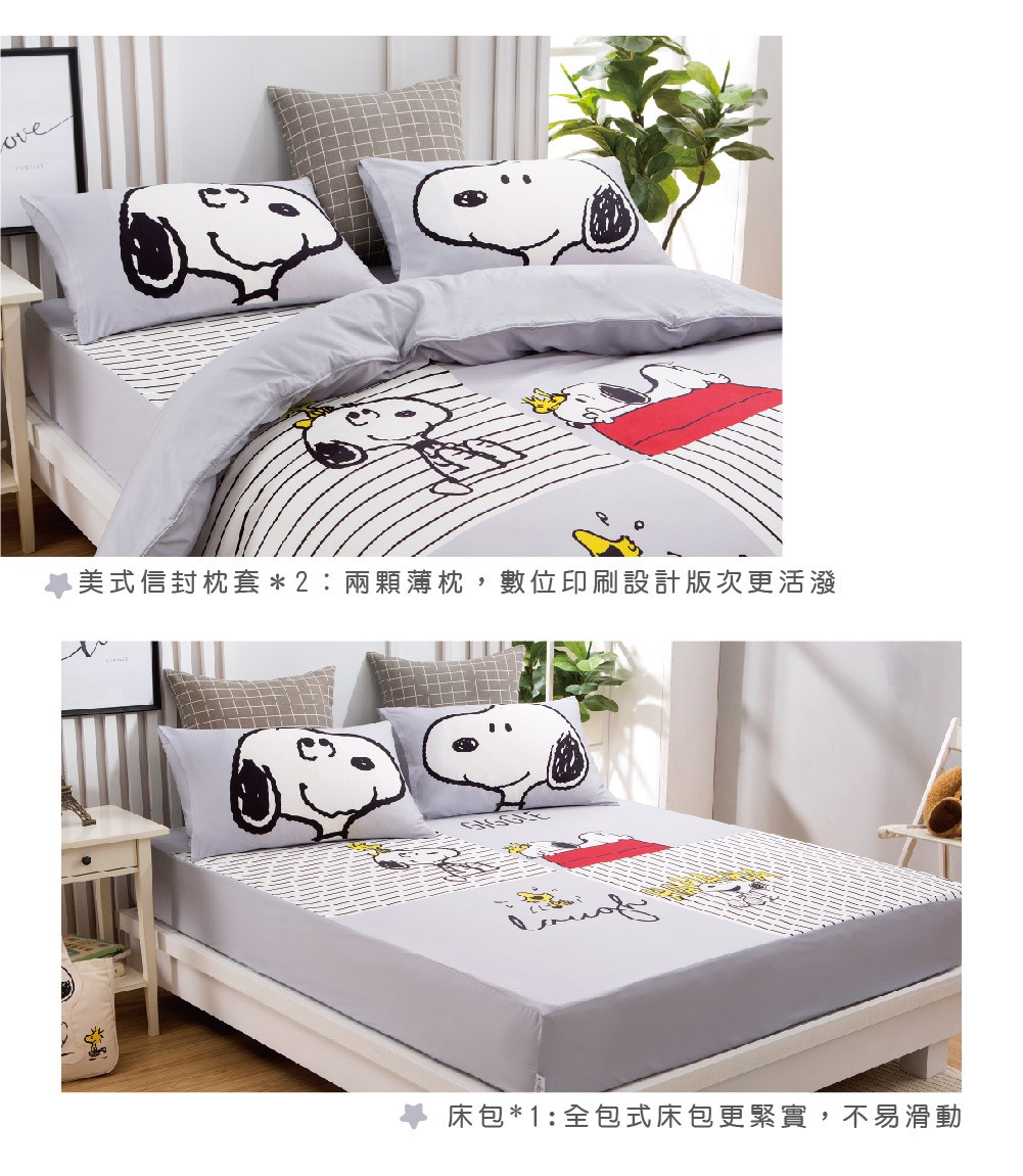 • 美國官方PEANUTS花生漫畫正版授權 • 奧斯汀寢飾獨家設計 • 內容件數-床包1件、薄枕套2個、鋪棉兩用被1件(單人尺寸枕套1個)