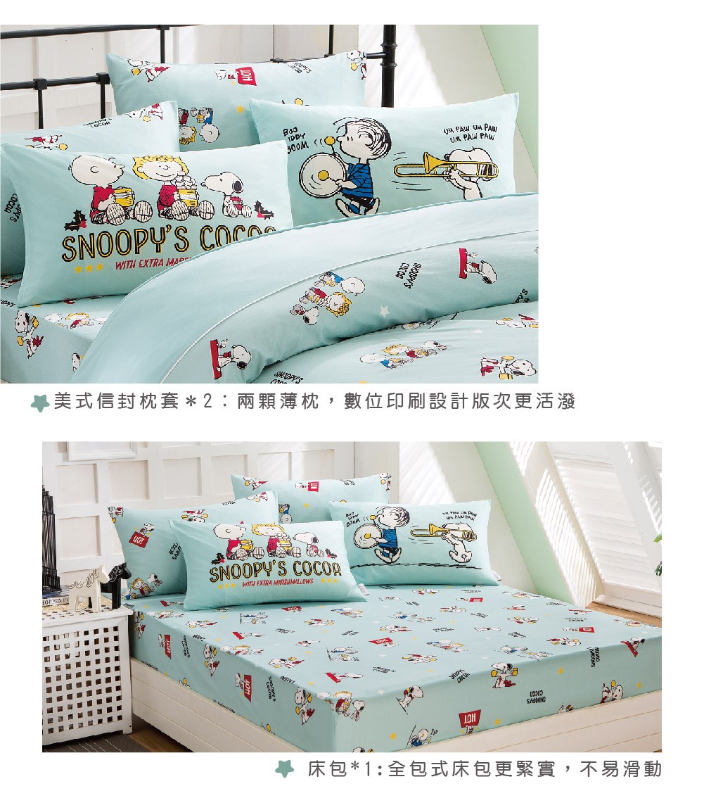 • 內容件數-床包1件、薄枕套2個、鋪棉兩用被1件(單人尺寸枕套1個)